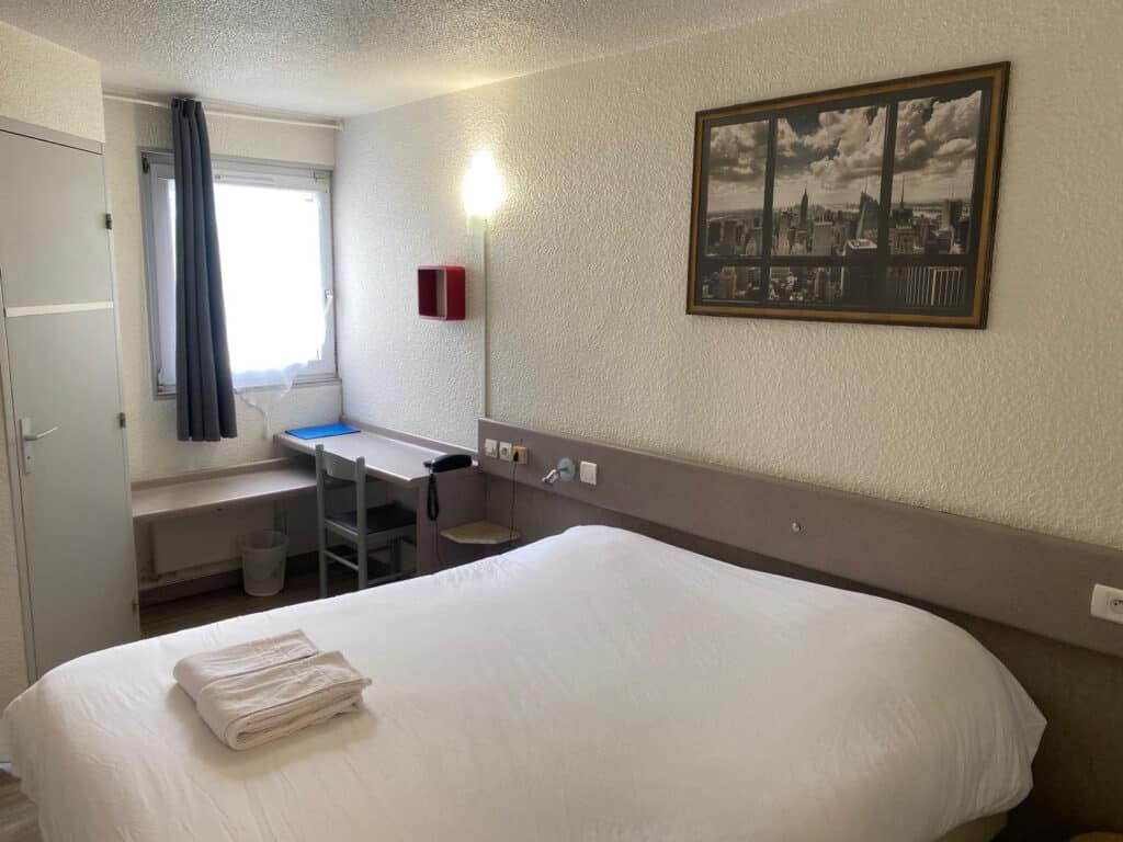 retour Chambre double Chambre double avec Wi-Fi gratuit, TV et salle de bain privée. Profitez de votre séjour avec toutes les commodités nécessaires. Wifi sans fil Télévision Non fumeur Salle de bain privée À partir de75€Réserver maintenantNos autre chambres Chambre familiale À partir de 95€Chambre triple À partir de 85€Chambre lits jumeaux À partir de 75€Chambre communicante À partir de 110€